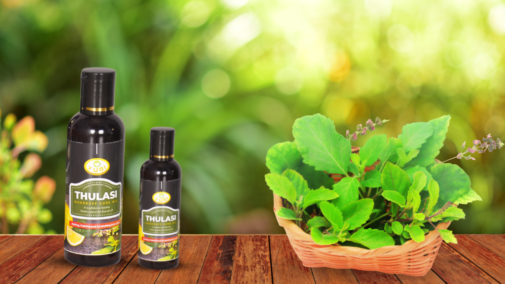 Tulasi dandruff cure oil is a siddha proprietary medicine, preparation based on standard operative procedure mentioned in Siddha texts.It is a medicated oil in which coconut oil in its absolute density infused with bioactive therapeutic components of medicinal plants exclusively meant for dandruff.